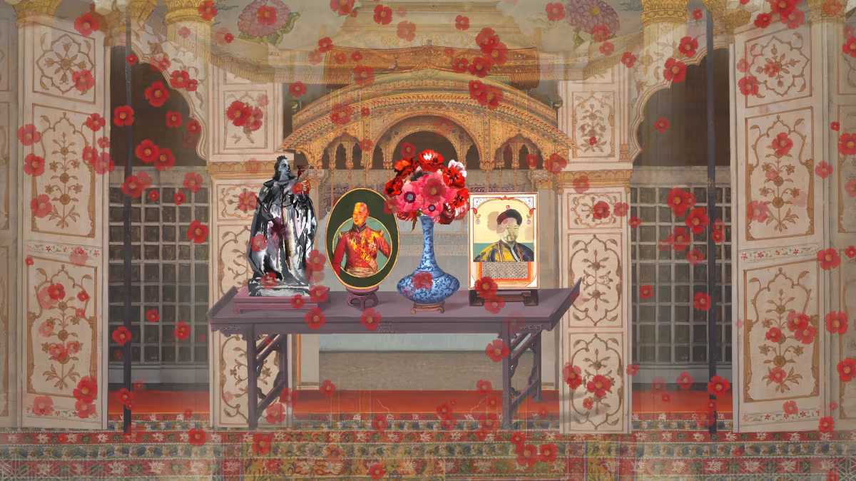 A monumental animated commission projected onto the M+ façade, this work explores colonial trade routes, migration, and the layered histories of the South China Sea. It blends miniature painting traditions with digital animation, creating a constantly shifting narrative landscape.