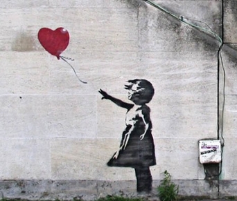 One of Banksy’s most iconic works, often interpreted as a symbol of hope, love, or loss. It gained renewed attention when it partially shredded itself after being auctioned.