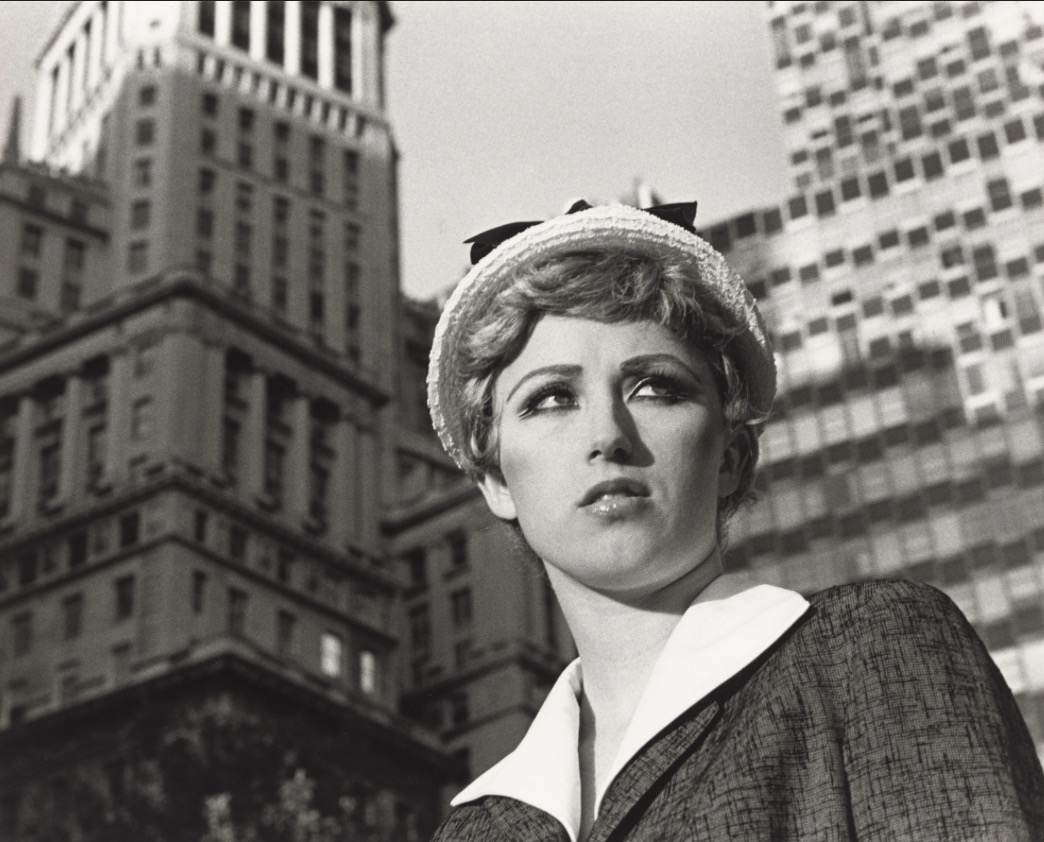 Part of Sherman’s late 1970s series, these staged photographs mimic film scenes to explore identity and representation.