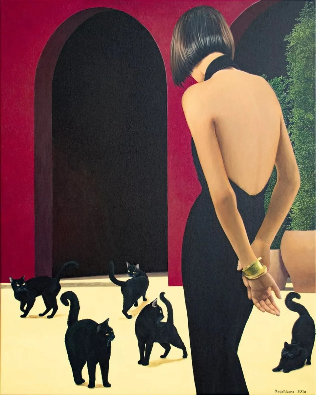 In Well, My Shadows, Nataliya Bagatskaya explores dual presence through a carefully staged scene. Her figures often appear composed and almost classical, yet something in the environment quietly kunsettles that balance. The shadows here are not just effects of light. They act as psychological extensions, suggesting memory, inner tension, or parallel versions of the self. The work sits between control and vulnerability, where what is visible and what is felt do not fully align.